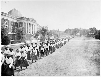 Women students of Tuskegee Institute marching in rows on campus, c. 1910s (from The Schomburg Center for Research in Black Culture http://digital.nypl.org/schomburg/images_aa19/toc.html )